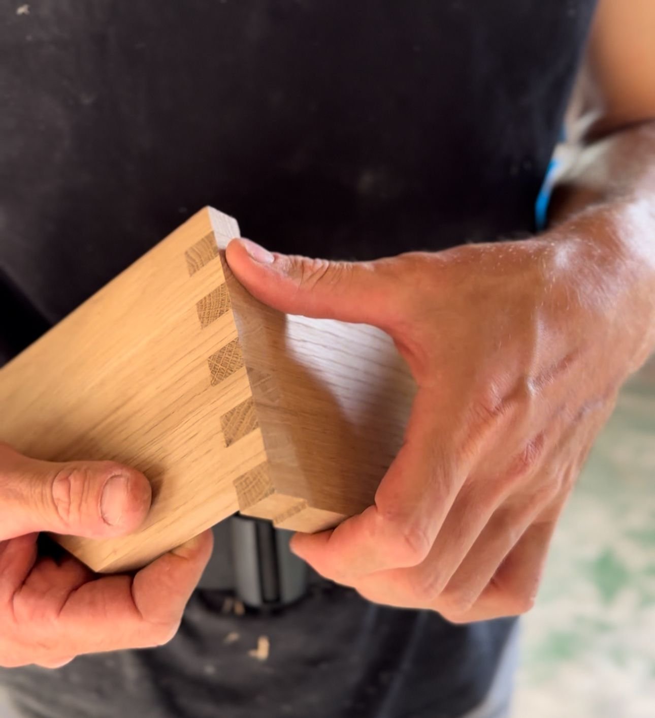 Chacun des quatre tiroirs de l’enfilade Diplopoda a été fabriqué avec des queues droites traditionnelles, garantissant à la fois solidité, précision et durabilité. Cette technique d’ébénisterie sur mesure met en valeur notre savoir-faire artisanal et assure un assemblage parfait entre les éléments, tout en offrant une ouverture fluide et un rendu esthétique soigné, fidèle au design imaginé par Appartement 2